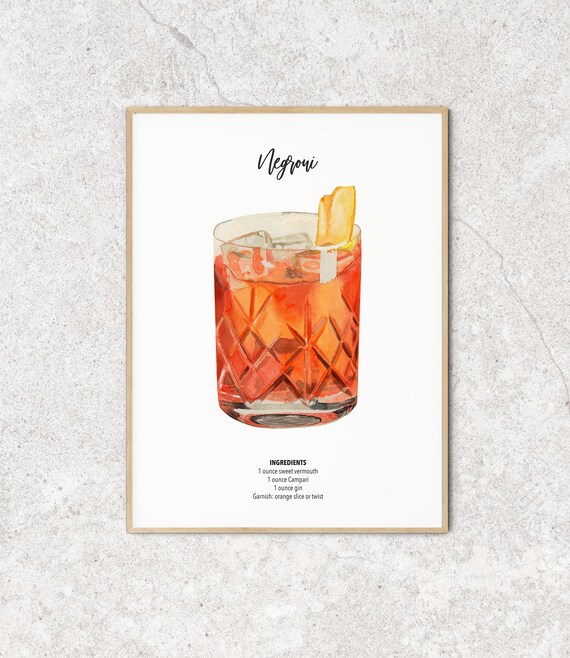 Negroni Cocktail Watercolour Illustration Home Bar Pub Etsy